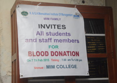 To nurture a sense of social responsibility in our students, MIM conducts blood donation camp every year. This year it was conducted in association with Sankalpa Blood Bank. The event witnessed participation of 200 people and 100 bottles of blood were collected and donated.