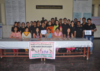 As a part of our social responsibility we conduct CSR activity every year. This year, in Association with Kartavya Foundation, MIM conducted a CSR activity of Empowering Blind Woman. We helped these women Sell beautiful rakhis made by them. They sold rakhis in a day and helped in revenue generation for blind woman.