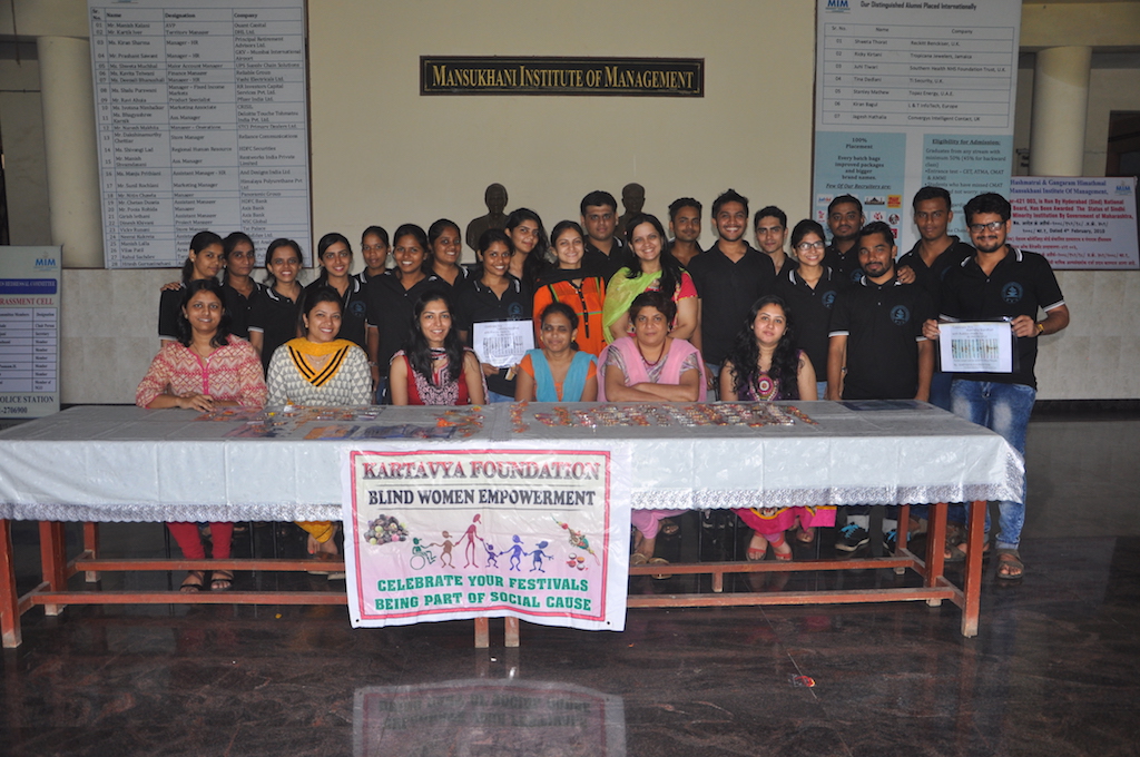 As a part of our social responsibility we conduct CSR activity every year. This year, in Association with Kartavya Foundation, MIM conducted a CSR activity of Empowering Blind Woman. We helped these women Sell beautiful rakhis made by them. They sold rakhis in a day and helped in revenue generation for blind woman.