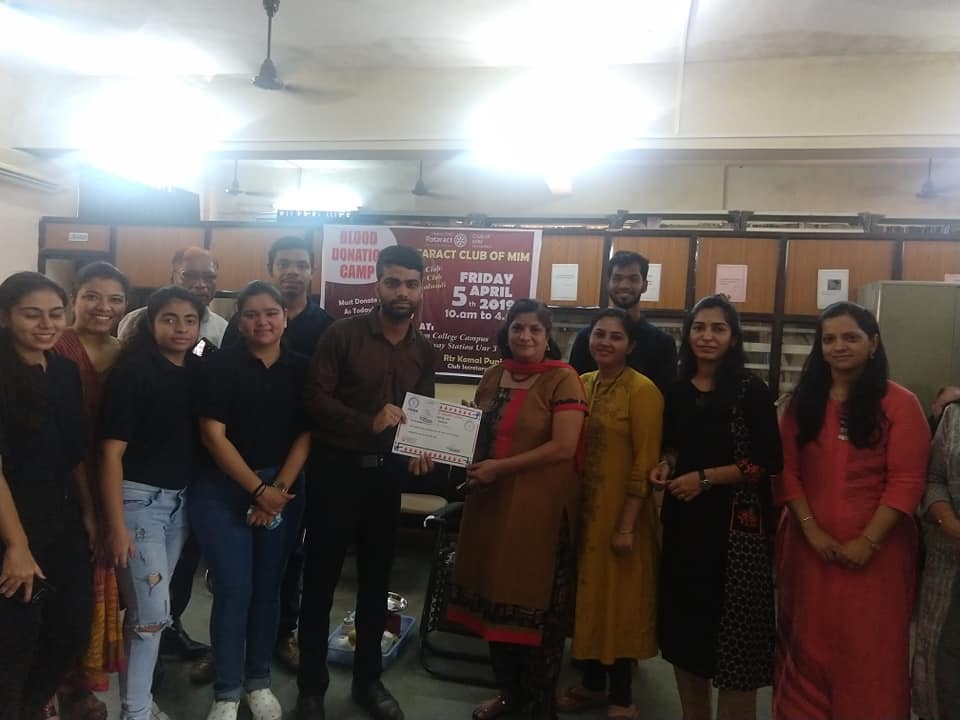 To nurture a sense of social responsibility in our students, MIM conducts blood donation camp every year. This year it was conducted in association with Sankalpa Blood Bank. The event witnessed participation of 200 people and 100 bottles of blood were collected and donated.